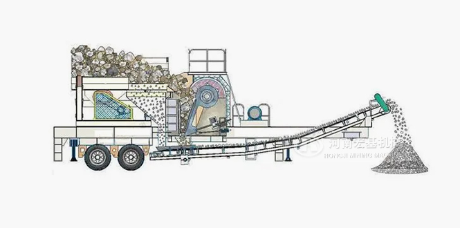 HJ移動(dòng)顎式破碎機(jī)由高性能顎式移動(dòng)破碎機(jī),及車載式給料機(jī)和高強(qiáng)度振動(dòng)篩組成的移動(dòng)式破碎系統(tǒng)。該機(jī)器長(zhǎng)度短、重量輕;機(jī)動(dòng)性強(qiáng)適應(yīng)性強(qiáng),能有效減少物料運(yùn)輸費(fèi)用。適合粗碎、細(xì)碎及制砂作業(yè)。
