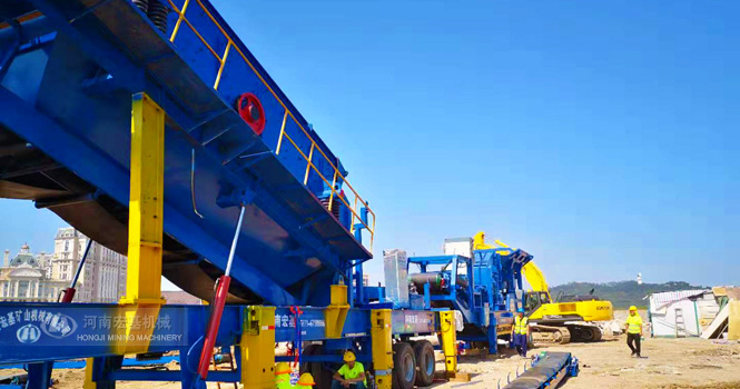 宏基設(shè)計的HJ系列移動篩分站能夠提供高運(yùn)行速率和操作靈活性。擁有很高的生產(chǎn)能力和適應(yīng)性,可以與宏基機(jī)械的初級顎式移動破碎機(jī)聯(lián)合作業(yè),也可以單獨作為3種粒徑骨料的分類篩分機(jī)來使用,可以用輪式裝載機(jī)、挖掘機(jī)或破碎機(jī)的輸送機(jī)來給料。